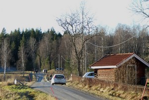 Det var den 11 november, gråmulet och endast +5 grader. Greta och jag hade varit till Djupen och fyllt på solrosfrön och talgbollar vid fågelmatningen. På hemvägen när vi passerat Nybrobäcken vid Lilla Trugsbo (klockan var 11:15) fick jag i ögonvrån se en fågel flyga upp från åkerkanten. Den hade vit övergump – domherre tänkte jag samtidigt som jag reagerade på flygsättet. Fågeln landade i en rönn, när jag stannat bilen för bättre koll såg jag direkt att det var en stenskvätta. När fågeln flyttade sig uppåt i trädet, visade den en stjärtteckning och en stor vit övergump som fick mig att börja riva efter kameran. Jag minns att den där stjärtteckningen har bara två/tre stenskvättearter. Nu var det bara att stanna bilen, av med säkerhetsbältet och spana för det kunde bli knepigt med artbestämningen. Efter ett tag började stenskvättan födosöka från snökäpparna utefter vägen, varifrån den dök ner och plockade ätbart på vägen och i dikesrenen. Fågeln uppträdde skyggt. Avståndet till stenskvättan var långt men jag tog några långskott med kameran bara för att föreviga obsen. Det mulna vädret samt beroende på vilken bakgrund fågeln hade, gjorde att i vissa lägen var fågeln mörkt gråbrun på vingar, rygg och huvud, med markerat ljusa kanter på armpennor, arm- och handtäckare. Hakan och strupen var på avstånd tydligt ljusa, bröstet var flammigt i ljust gråbrunt och den saknade ögonbrynsband. Buken var svagt gråbrunflammig fram till den vita undergumpen. Ben och näbb svarta. I andra lägen var fågeln överlag mycket ljusare t.o.m. lite ljusbruna nyanser. Ca kl 12:10 skickade jag ut obsen som trolig nunnestenskvätta på Ramnäs-Virsbo Naturklubbs SMS-lista.